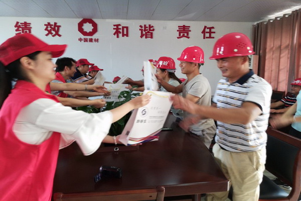 “你们辛苦了!请注意安全。”工会志愿者来到生产现场看望正在工作的农民工朋友。一声问候一份礼物似一丝清凉,让身处生产一线的农民工朋友感受到夏日的清凉。