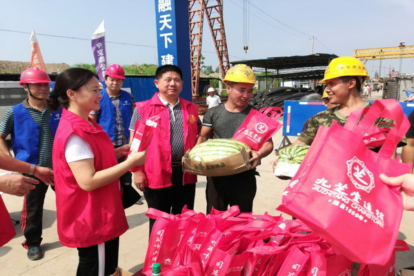 “感谢工会的关怀,谢谢志愿者这么热来看望我们,还送了这么多好东西。我们有信心也有决心一定能按时保质保量的完成大桥施工任务。”许多工人师傅们对志愿者纷纷表达了感激之情。