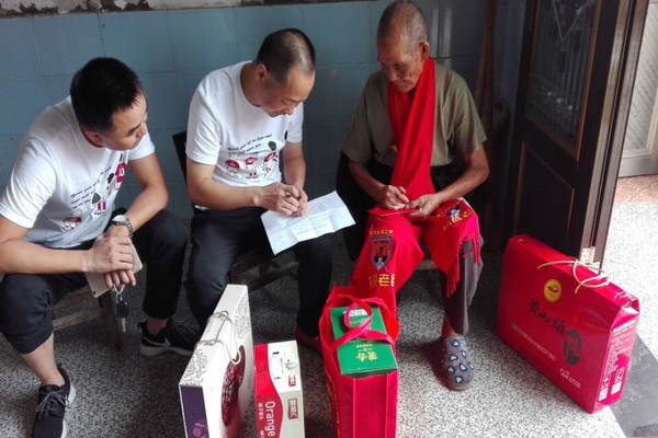 家住湘鄂边大湖口镇焦圻五一村的92岁抗战老兵刘兰清,看见志愿者驱车近百里路来看望他感动不已。每看望老兵一次,志愿者都要认真聆听老兵讲述抗日故事,与老人一起唱抗日歌曲。志愿者们一边与老兵聊着天,拉家常,了解老兵的衣、食、住、行及最近的身体健康状况,一边帮老兵干点家务活。